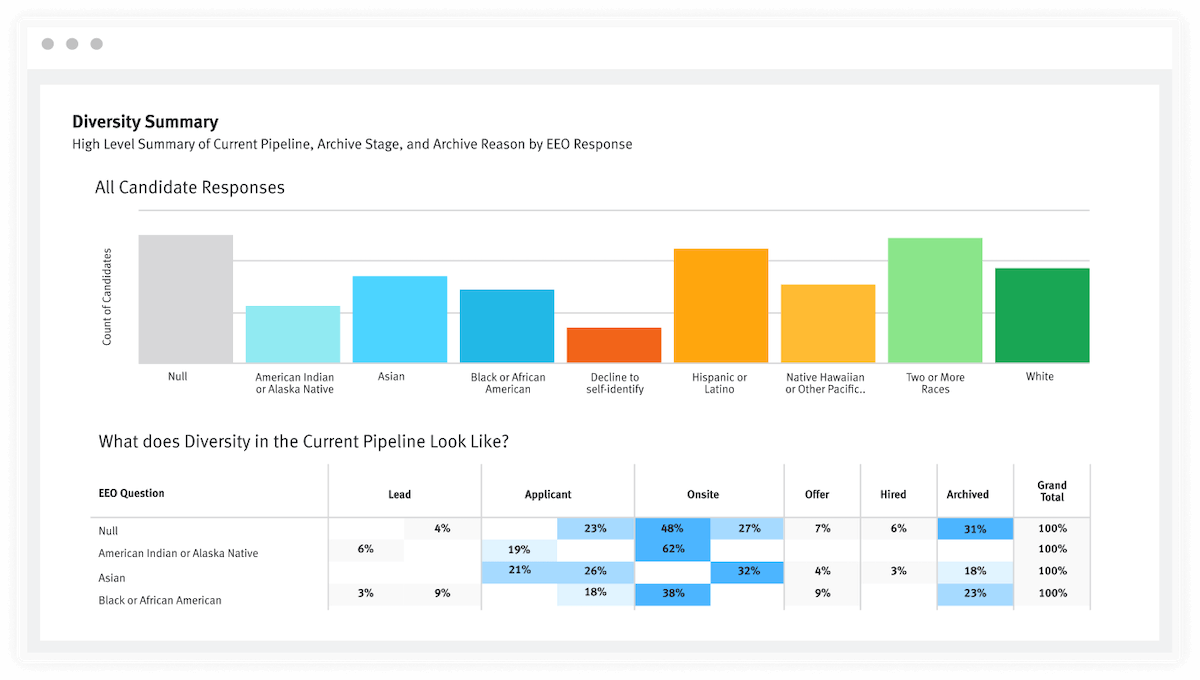 According to our 2021 State of Diversity, Equity, and Inclusion Report, just 31% of orgs had a data-driven approach in place to help them analyze data tied to DEI efforts and “uncover and address potential biases” in their hiring processes.